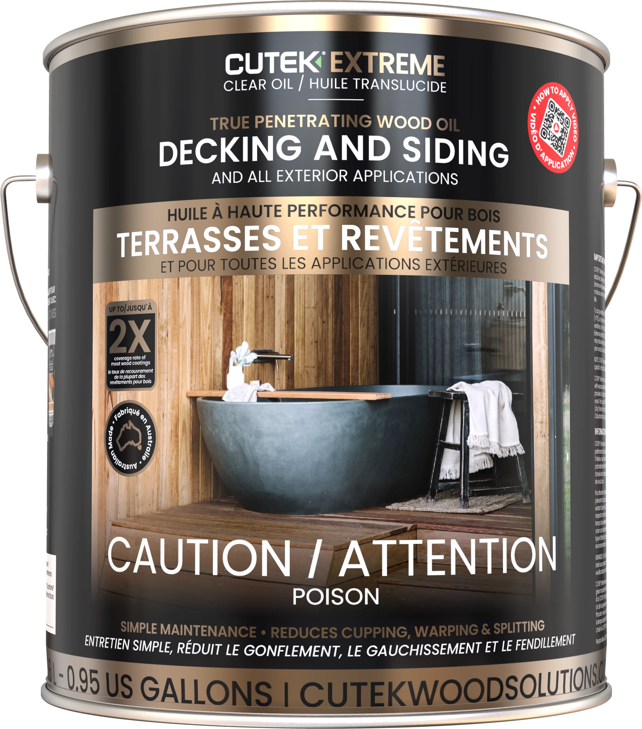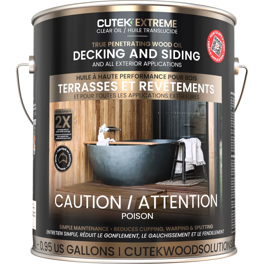 Wood must be bare, clean, and dry. If the surface shows contaminants like water marks, iron stains, tannins, or mill glaze, we recommend using Cutek Wood Reviver before applying Cutek Extreme.